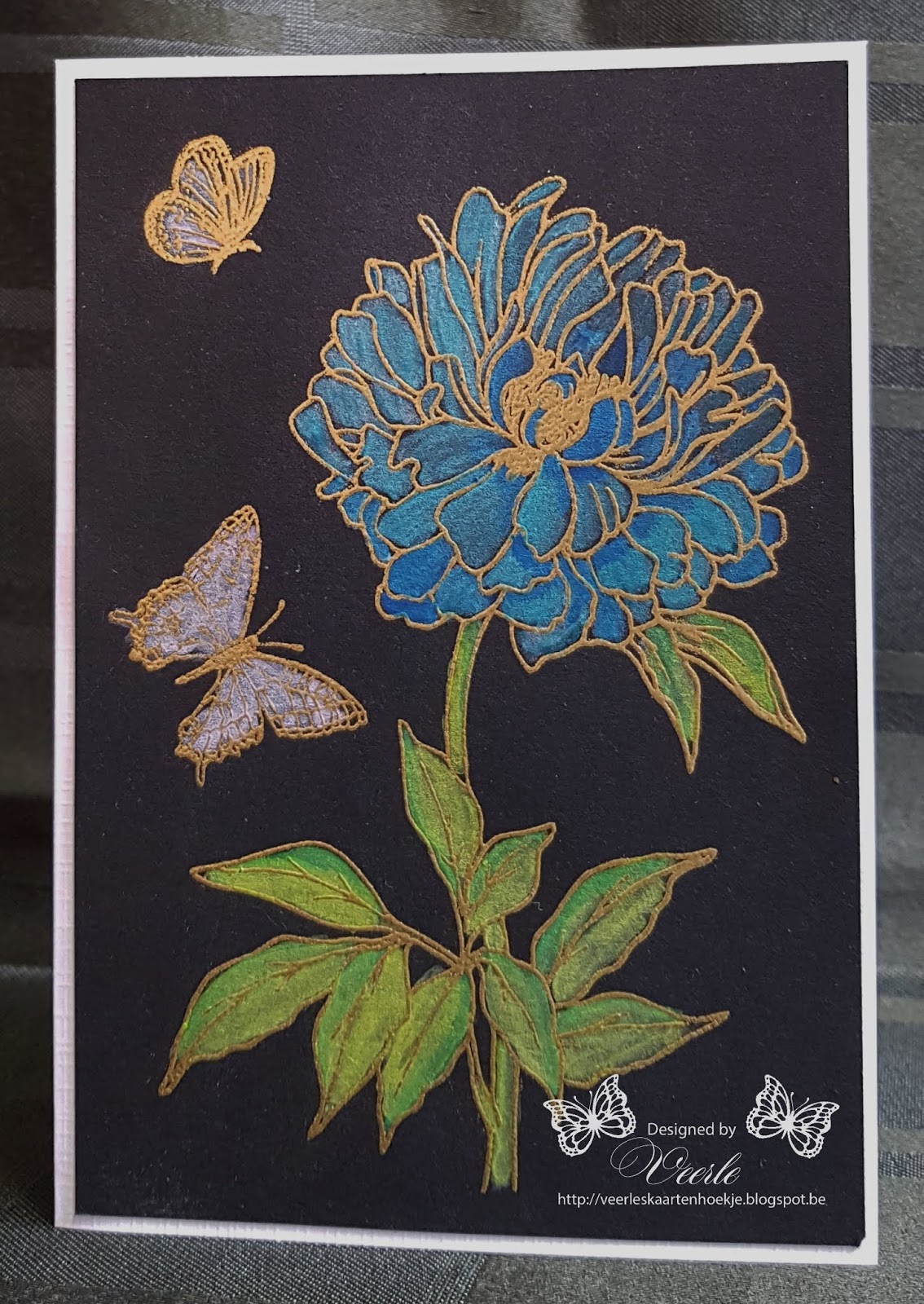 Bij allemaal heb ik mijn gestempelde bloemen met gouden embossing poeder gedaan.